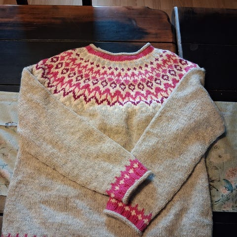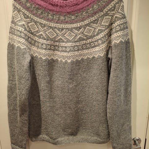Håndstrikket genser i mønster Alasuq str xs 12/14 år