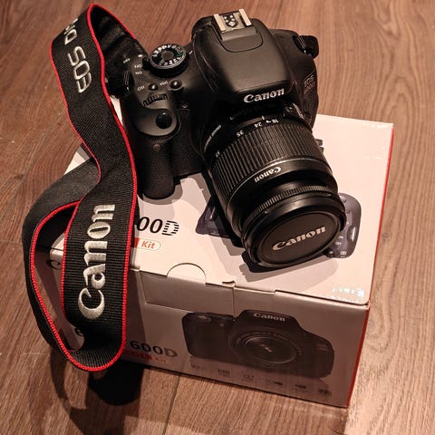 Fint Canon EOS 600D speilreflekskamera med utskiftbare objektiver selges grunnet endret bruk. Praktisk skjerm som kan vippes ut/roteres. Blitz er noe treg på åpning ved bruk, men kan rengjøres for full funksjonalitet.