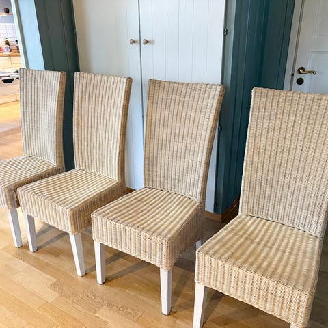Stolene er vintage og det forekommer bruksmerker og enkelte skader i rottingen. Se bilder for tilstand av hver enkelt stol.