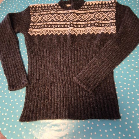 Tilstand? Pent brukt, men noe ullnuppete på utsatte steder. Forbehold om nupper, løse tråder, uoppdagede hull etc. Pris justert.