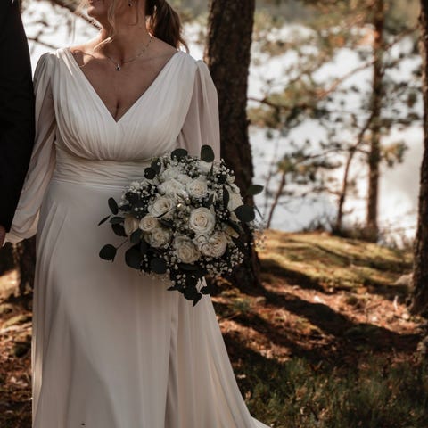 Selger en vakker og elegant brudekjole fra Monica Loretti, kjøpt ny i juli 2025 og kun brukt én gang. Kjolen er renset.