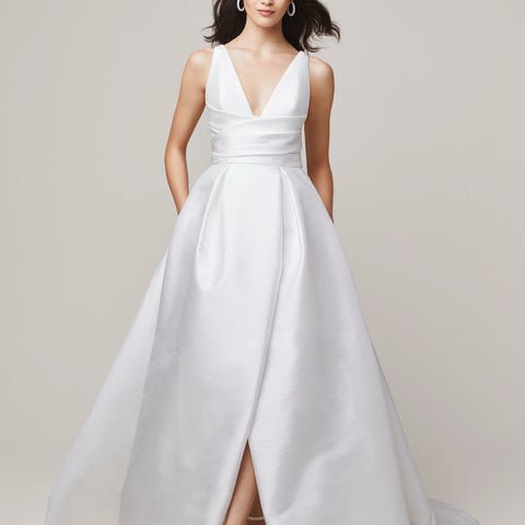 Kjolen har off-shoulder-ermer som er påsydd hos skredder. Disse kan enkelt sprettes opp eller gjemmes i kjolen, for eksempel til brudevals. Knyting i ryggen gir fleksibel og behagelig passform. Kjolen har split foran og praktisk dansehempe.