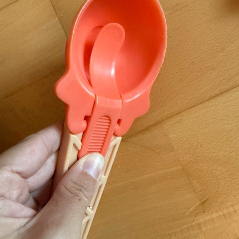 Nye. Selges da vi har for mange isskjeer. Smart skje hvir du trykker på knappen så popper isen ut ved servering.