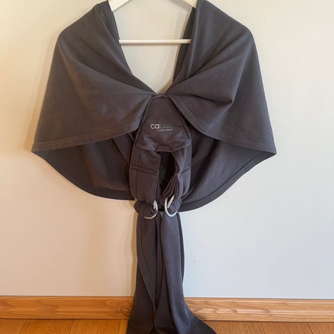 Close Caboo bæresjal i grå farge. Laget av mykt og slitesterkt materiale. Designet for komfortabel bæring av barn. Passer for foreldre som ønsker praktisk og ergonomisk bæreredskap.