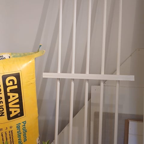 Flott gelender til trapp gis bort, 390 cm. Det følger også med 'spiler' der trappa går ut i rom - de måler 179 til 216. Tlf 91337447