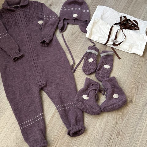 Lillelam barnestrikket sett i merinoull i fargen rosa, størrelse 92, til jente. Settet består av en strikket jakke og bukse, laget av merinoull som gir god varme og komfort.