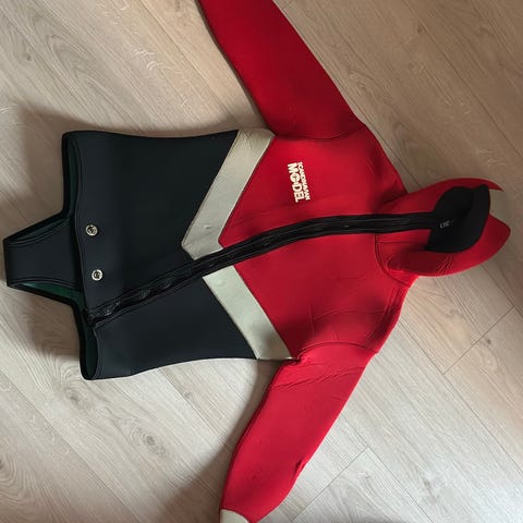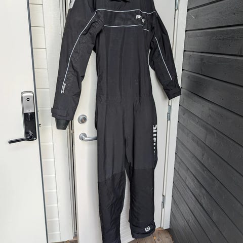 Selger en Junior tørrdrakt i farge sort og oransje i str L/XL. Den har føtter i lateks, neopren på ermer. Den har vanntett YKK glidelås med åpning bak. En fin ting er at den har neopren i halsen, noe som er genialt da man slipper å få «strupt» følelsen.