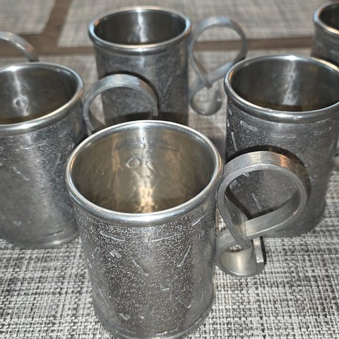Norsk Tinnperle Karusellen 1964 tinnskål. Laget av tinn, rund form med dekorativ kant. Produsert i 1964, egnet for samling eller dekorasjon. Bruksmerker, men er ikke pusset på lenge så har en del og hente der. Se bilder