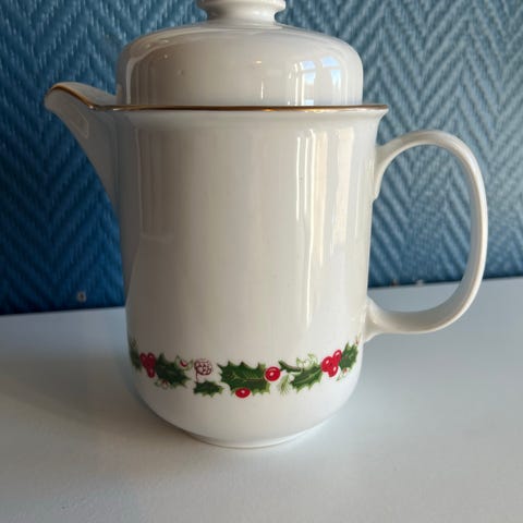 Kaffekanne, fløtesett og lysestake til juleservise fra Max Kopp