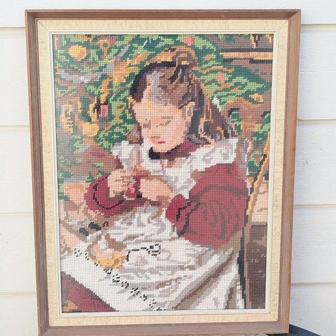 Veggteppe/ veggpynt med design av en "Willow Tree"-figur skapt av kunstneren Susan Lordi. Oversatt tekst er "Vennskap er den søteste gaven!"