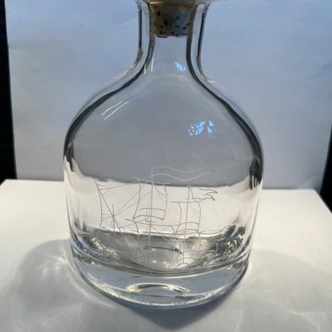 Karaffelen har en liten ripe på siden, men er ellers hel og fin. Kan sendes. Frakt betales av kjøper.