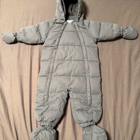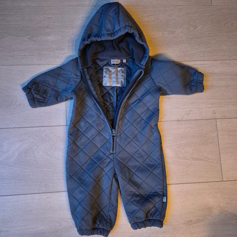 Wheat Barneklær Buksedress i størrelse 62, designet for unisex bruk. Dressen er grå og laget av polyester. Den har hette og hel glidelås foran, med elastisk midje for bedre passform. Passer til barn i denne størrelsen. Pent brukt, Ingen bruksskader.