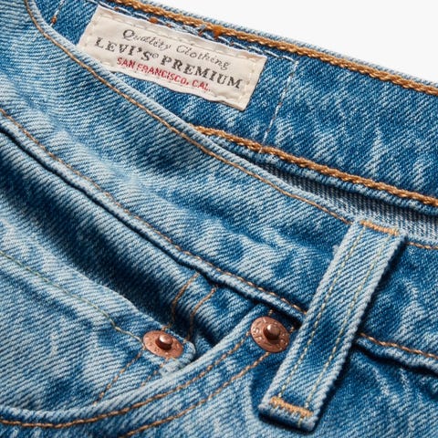 Selger nye og ubrukte bukser. Ulike merker, som Levis, Lee, Tiger og Sweden, Riccovero..