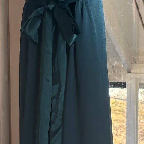 Kjole i str 46 for kvinner. Kjolen har plisserte detaljer og lange ermer. Materialet er lett og gjennomsiktig chiffon som gir et elegant uttrykk.