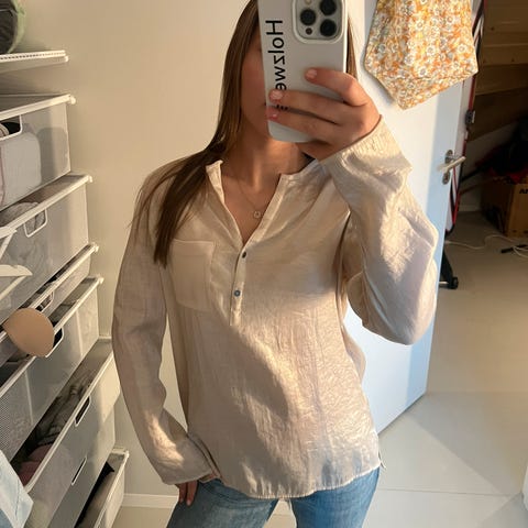 Lett skjorte i krinklet stoff. Nesten ikke brukt. Fin over en tynn ulltrøye/singlett også..