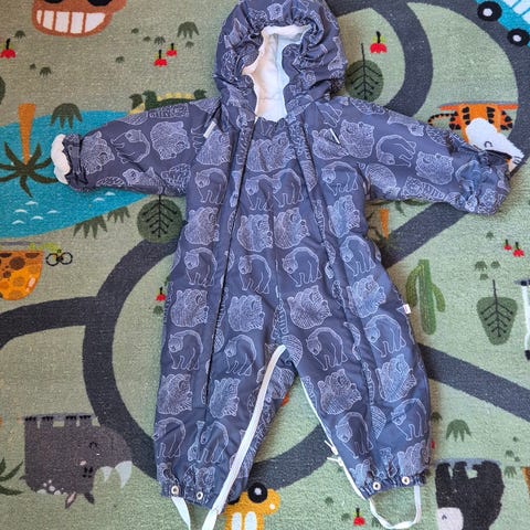 Fin dress til baby. God bevegelighet og oppleves ikke glatt når man holder baby slik mange dresser gjør. Passer fint høst/vår. Også plass til flere lag.
