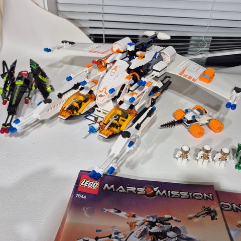 Herlig serie med nr. 7312, 7313, 7314, 7315 og 7316. Her er marsboere og astronauter i full sving. Så langt jeg kan se mangler det overkropp og hode til en marsboer i 7316 ellers er alle figurene her. Det mangler ellers noen deler på selve byggverkene. Kun 7314 som er komplett. Selges derfor slik de er på bildene. Byggeanvisning til 7313 følger med.