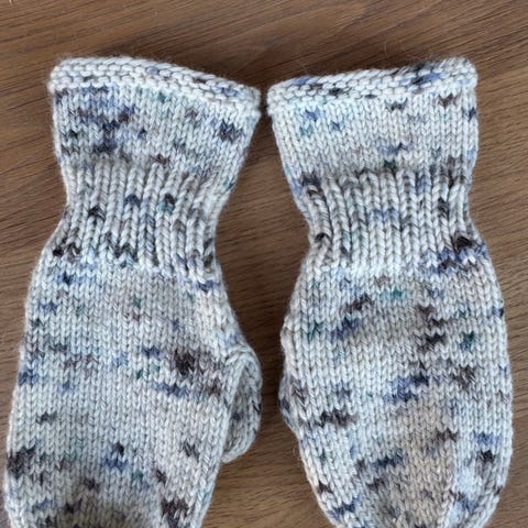 Ubrukte hjemmestrikkede votter (ca 1-1,5 år) i merinoull