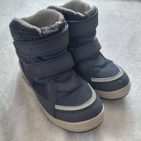 Vikafjell barnesko for gutt i størrelse 31, blå farge. Skoene har borrelås og snøring for enkel tilpasning. Egnet for utendørs bruk. Veldig godt brukt av et barn
