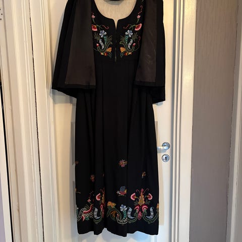 Ringeriksbunad selges kr 27.000, sort og blå. Prisen inkluderer bunad med veske og stoffbelte.