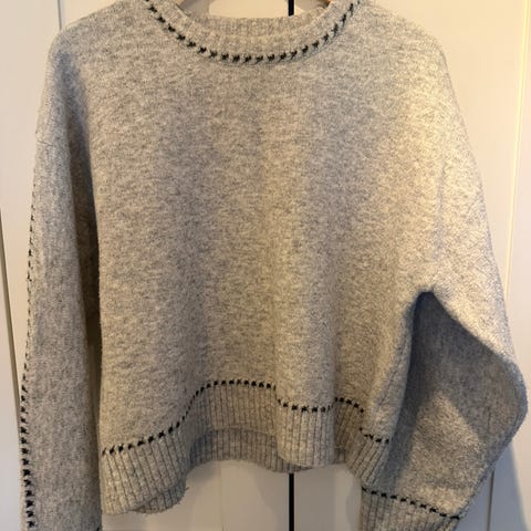 Pent brukt strikke genser i brun/grå strl.34