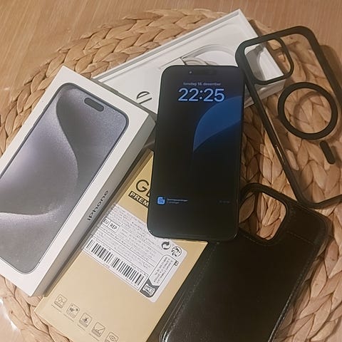 Apple iPhone 16 Pro mobiltelefon med 1 TB lagringskapasitet. Helt ubrukt med papirer.