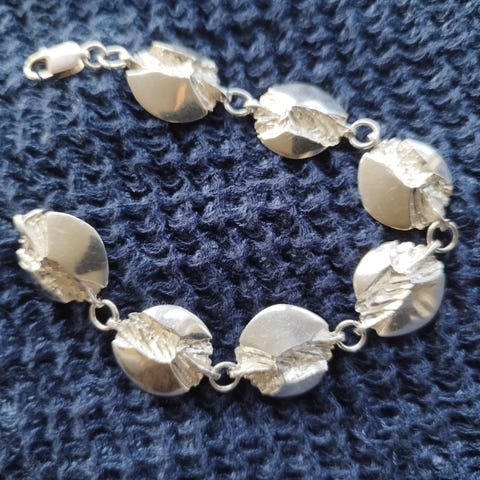 Nydelig vintage 925s sølvarmbånd med sikkerhetslenke, designet av Arne Nordlie. Lengde ca 18,5 cm og 0,9 bredde.