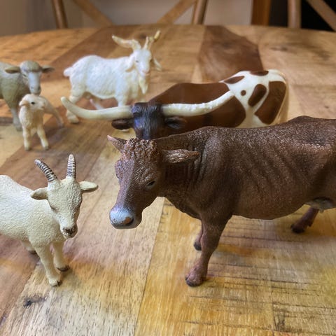 Hest, kyr, geiter og griser fra Bullyland. Håndmalte kvalitetsdyr som holder i år etter år.