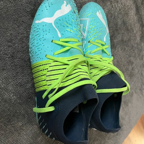 Originale puma fotballsko i størrelse 42,5 med flerfarget design. FG-sko (Firm Ground) men funker like bra på kunstgress. Skoene er stor i størrelse så anbefales for de som bruker 43 i sko str.