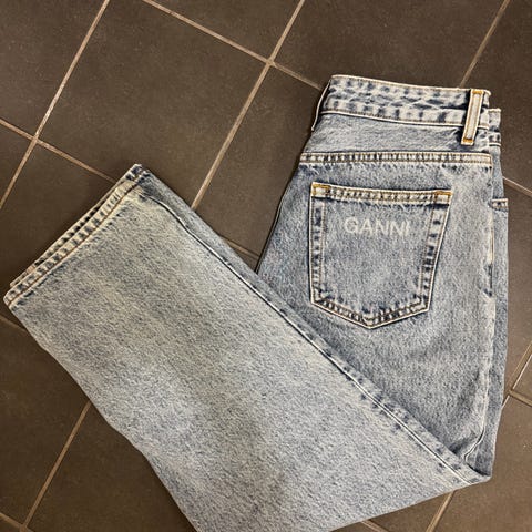 Ganni Cutye Cropped jeans dame med størrelse W29 L32, lys blå denim. Jeansene har en cropped passform, som gir en 30 lengde om du ønsker den helt ned til ankelen. Den er veldig myk og komfortabel, og veldig flatterende. Jeg kjøpte dessverre feil størrelse, og har derfor kun brukt denne 1 gang.