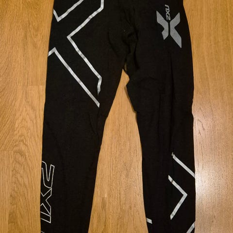 2 stk 2XU tights, str.S som også passer XS. 1 sort med hvit logo, 1 sort med grå logo