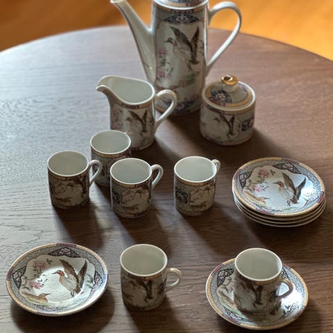 Norsk Norge tallerken servise service middagstallerken frokost fronosttallerken kakefat fat blå H h hh g