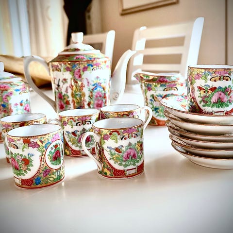 Vakker fargepalett, håndmalt uttrykk og klassiske rosemotiver som gjør tallerkenene både dekorative og brukbare.