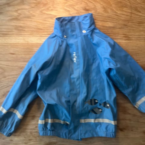 Regnjakke til gutt selges. Den er blitt forblitt i str.