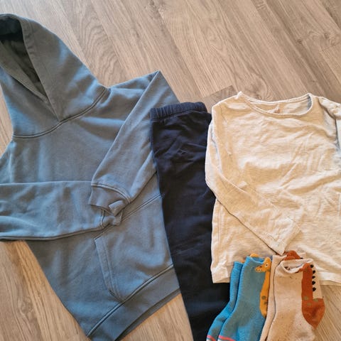 Pent brukt hettejakke fra Gullkorn Design, tights fra Name it, og t-skjorte fra Name it i str. 110 selges samlet for 150 kr + porto 😊
