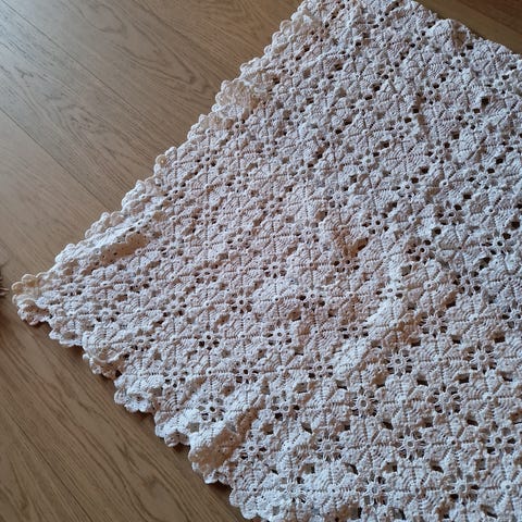 Nydelig Handheklet duk /sengeteppe 185br/190l og 2 puter Selges
