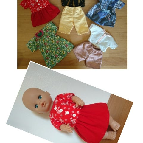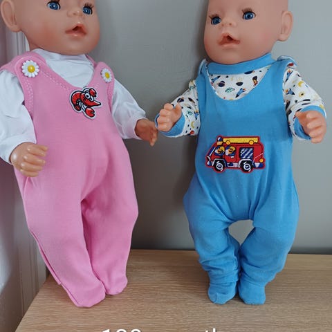 Laget av stretch- stoff. Jersey. Sydd til 43 cm lange babyborndukker.