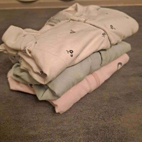 Tre søte pysjamaser i str. 56. Ole Brumm er fra H&M, den med glidelås er fra Kappahl.