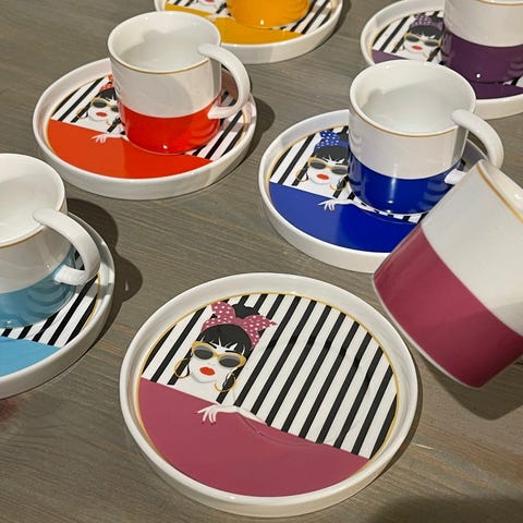 Meget spesielle og pene espressokopper med skåler. Kjøpt i Kuwait. Ingen skår eller misfarging.