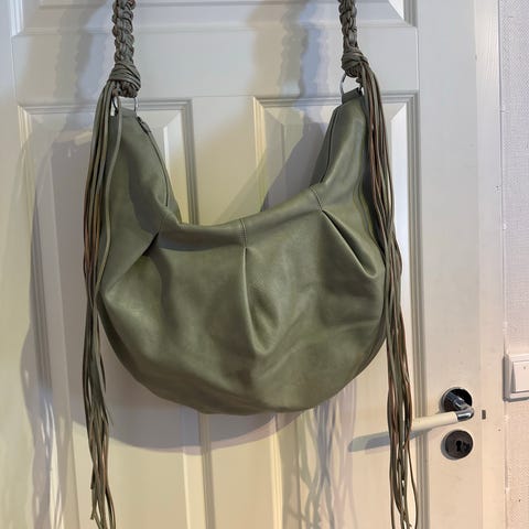 Selger min veldig lekre Jimmi Choo veske da den dessverre blir lite brukt ( bruker primært små vesker). Den har alt som gjenkjenner Jimmy Choo. Rød semsket innvendig, samt rød Lie såle som tag for glidelås. Naglene og frynser gjør det til IT veske.