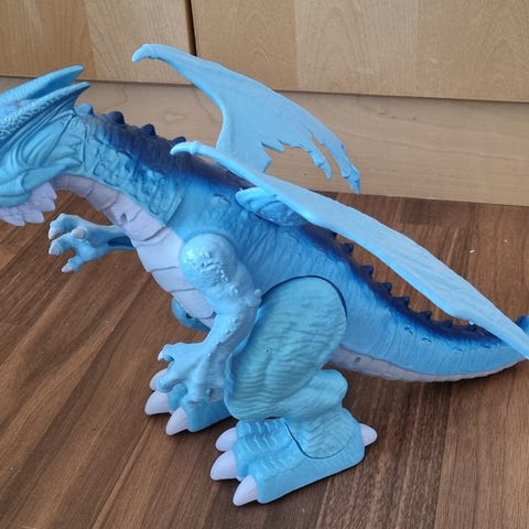 Robo Alive - Dragon Asst. (7115) drage selges. Den beveger seg, åpner munnen (blått lys inni munnen) og lager lyd. Koster 299 kr ny.