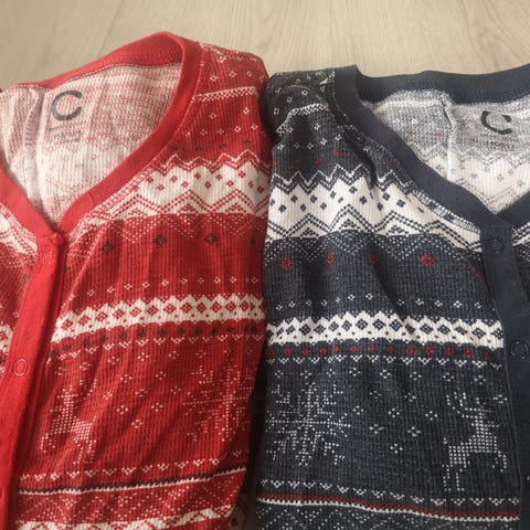 Pledd bestående av to deler med julemotiv. 1mx1m. Stoffet er myk flis.