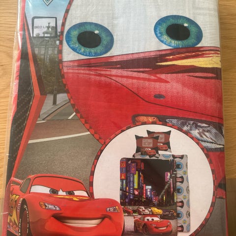 Pent brukt sengetøy med motiv fra Disney Cars. Størrelse 140x200 cm