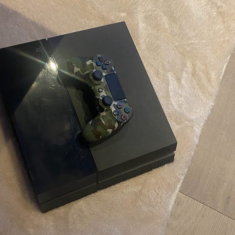 Sony Playstation 4 original selges. Inkluderer kontrollere, 2 ladere til kontrollere og strømkabel til konsollen. Denne er av den gode gamle modellen. Den har stått stille over et år, men startet den opp nå og den funker som den skal. Den er nok litt treg, da selvfølgelig pga alder. Kontrollerne er litt så som så, en har en løs del inni kontrollern, tror det er batteriet. R2 knapp på den ene er litt løs, begge kontrollerne er det egt noen sånne småfeil med, men begge fungerer til bruk. Kan evt få med The Crew 2( med cover) og Read Dead 2 (uten cover) hvis det er interessant