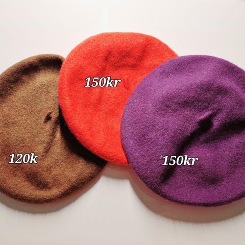 Den lyseste er i cerise farge og 29cm og den mørkeste 30cm i diameter.