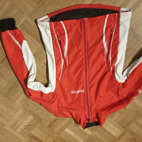 Trimtex løpejakke til dame med reklame og lomme på armen. Str s. Som ny. Må hentes i Kristiansand eller sendes om kjøper betaler frakt.