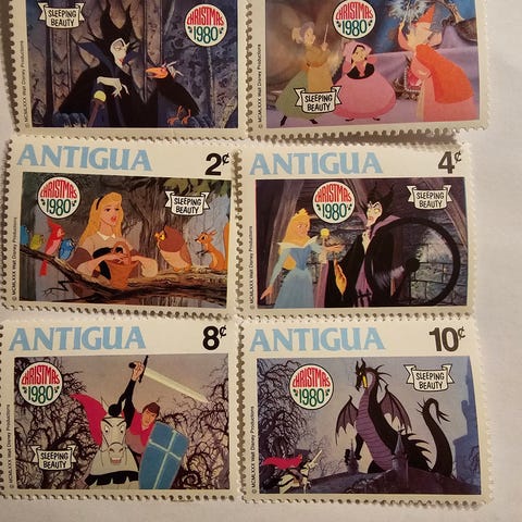Fire kort/postkort med kjente Disney prinsesser, selges kr 100,-