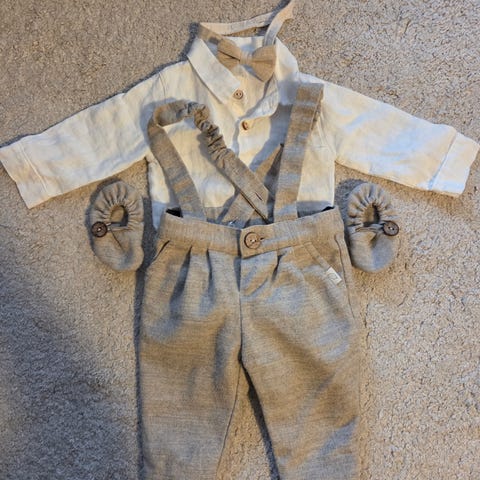 Selger en skjortebody (Lil' atelier) og bukse (name it) i størrelse 68. Kun brukt én gang. Nypris på bodyen var rundt 350 kroner. Bodyen har en slags eksklusiv look som gjør at den passer ekstra bra for juleselskap og andre feiringer.