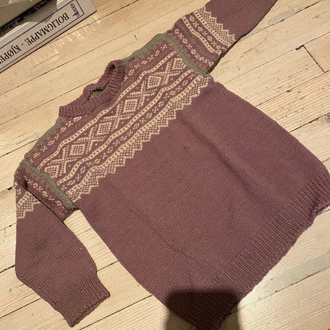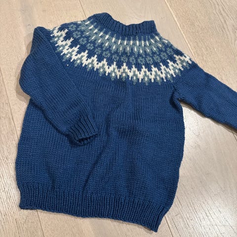 Deilig, kløfri genser med trompetermer.