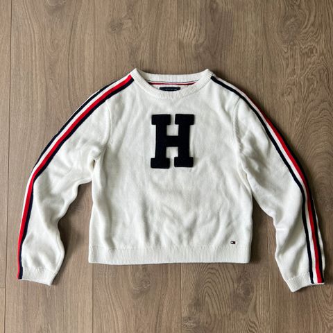 2 gensere: ein kvit og ein mørkeblå. Ingen synlige flekker.